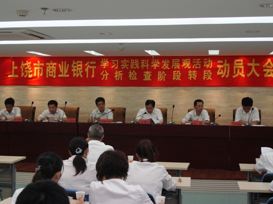 5月11日晚,上饶市商业银行召开学习实践科学发展观活动分析检查阶段转段动员大会,全体党员及中层以上干部参加了会议。